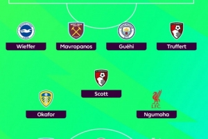 后卫:韦弗(布莱顿)、马夫罗帕诺斯(西汉姆联)、格伊(曼城)、特吕费尔(伯恩茅斯)