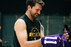 号码互换!今日训练湖人众将互换训练服 东契奇穿11 詹姆斯穿17
